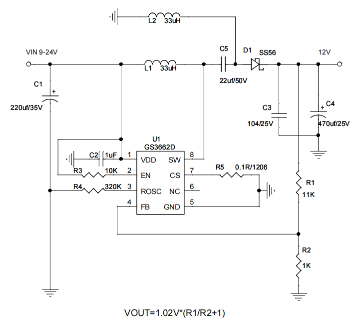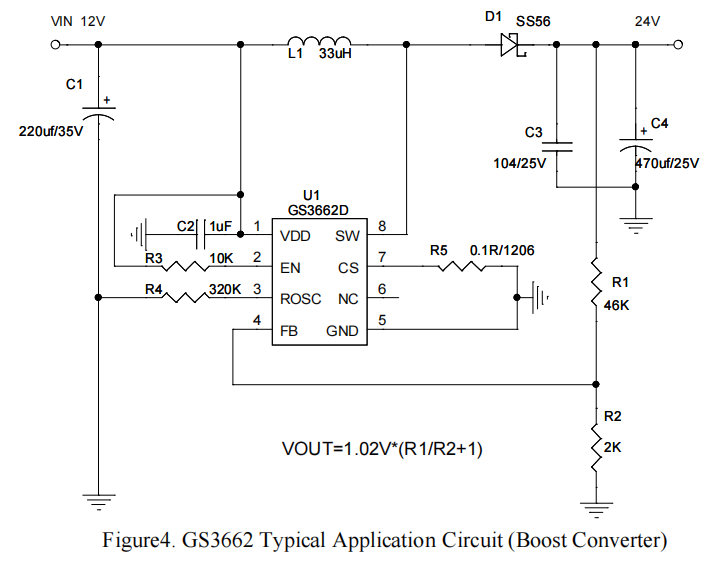 中广芯源新推出的一款直流升压稳压电路GS3662D。输入电压范围可由5伏特到35伏特,输出电压5--48V可调整且内部MOS输出开关电流可高达2A,峰值5A大电流,非常适合于数码便携产品电池供电,3G网络产品,数码相机,LCD液晶屏背光电路,太阳能照明路灯,网络通讯等产品的电压转换。