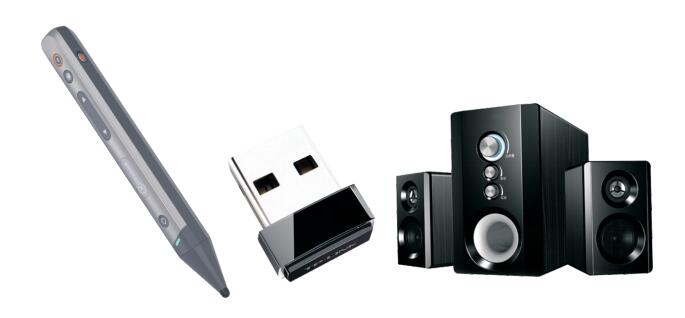 场景2:无线扩录笔、外置接shou器(usb线接大屏,3.5音频线外接有源音源):此配套使用,延c只有26ms,接大屏可以实现书写、语音输入、翻页、空鼠等功能