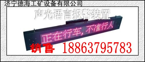 4.3当用于风门或其他需要报警的地方,只要传感器给出<0.5V低电位信号,本装置及时语言提示:“行人通过,关闭风门”、“前方放炮,立即撤人,禁止入内”等。同时汉字点阵显示。应用户要求,字幕可以任意编译,同时在间歇时间可播放MP3或其他宣传警示问候字幕。