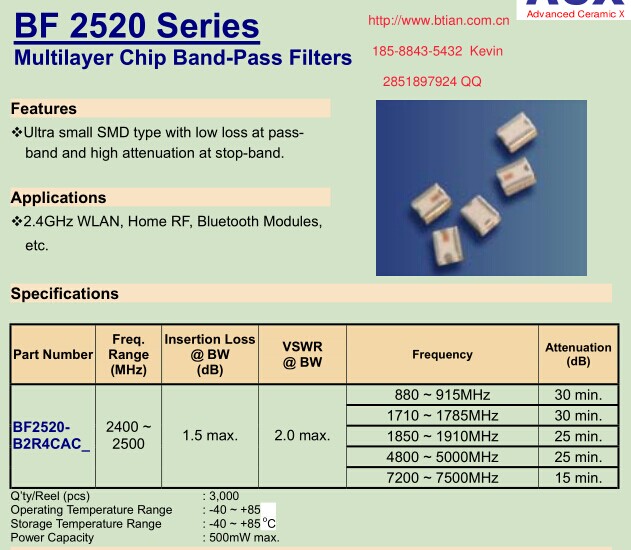 带通滤波器(2.4G、5G) ACX全系列一级代理