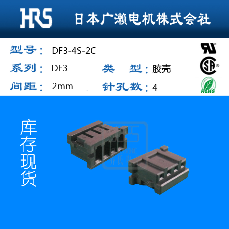 黑色DF3-4S-2C4孔广濑HIROSE胶壳2.00间距浙江供应
