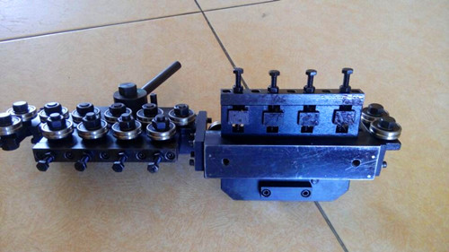 校直器说实在的就是塑性变形的过程,它与液压机的成型原理一致。当调节中间的滑轮的位置时,丝所承受塑性变形的力就不一样,经过多道的塑性变形,从而达到校直的目的。