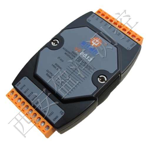 盈沣测控开关量输入模块可以检测14通道开关量状态,模块带有RS485总线,MODBUS-RTU协议, 模块有14路与通讯接口隔离的输入通道;可用作14路脉冲计数输入或14路开关量输入。模块可广泛应用于各种工业控制与测量系统中。它能用于流量计量、变送器脉冲输出测量、开关状态检测等。其输出为485总线方式,MODBUS-RTU协议集兼容于NuDAM、ADAM