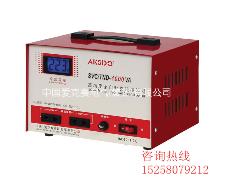 SVC/TND系列单相*全自动交流稳压器,由接触式自耦高压器、伺服式电动机、自动控制电路等组成,当电网电压不稳定或负载变化时,自动采样稳压器控制电路发出信号驱动伺服电机,调整稳压器自耦调压器碳刷的位置,使稳压器输出电压调整到额定值并达到稳定状态。本稳压器设有短延时、过压等保护功能,根据用户的需要可增设长延时与欠压保护功能。本稳压器可广泛应用于任何用电场所,是一种理想的稳压电源,适用于电脑网络工程,家用电器,通讯系统,医疗设备科研单位,测试、测量设备,工厂校验台。照明设备,工业自动化设备配套等任何用电的场所。