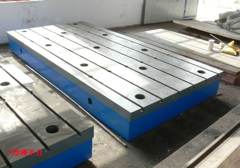 T型槽平板又称T型槽工作台,T型槽平板又分为:T型槽检验平板,T型槽划线平板,T型槽装配平板,T型槽焊接平板,T型槽铆焊平板,T型槽火工平板,T型槽检测平板,T型槽基础平板,T型槽工装平板。 T型槽平板是工业量具的一种,主要用来固定工件,是钳工工人用来调试设备,装配设备,维修设备的基础工作平台。T型槽平板也可用于动力机械设备的装配及调试;T型槽平板的工作面采用刮削工艺,对于3级平板工作面也可以采用刨削工艺,刨削工作表面的表面粗糙度按轮廓算术平均偏差Ra值应不大于5um