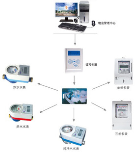 水电一卡通预付费管理系统由本公司生产的预付费电表、预付费水表、预付费气表,读写器和一卡通管理软件构成,物业管理部门可通过本系统完成对水费、电费和天然气费的智能化管理,无需挨家挨户抄表收费,由用户通过一张IC卡(射频卡)购水购电,先交费,后用水用电,解决了抄表累、收费难的问题,该系统是物业管理部门的好帮手, 该管理软件界面良好,操作简单方便,易学易用,功能齐全。
