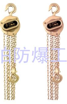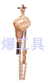 防爆手拉葫芦:本发明以铝青铜、铍青铜作为毛坯,手拉葫芦外壳采用H62铜合金材料。本发明手拉葫芦受力摩擦部位包括构成手拉葫芦的起重轮、手链轮、墙板、挂钩、齿轮、齿轮轴采用铝青铜、铍青铜合金材料。本发明防爆手拉葫芦适用于石油、化工、炼油、采气、油品运输、矿山作业等易燃易爆气体场所。