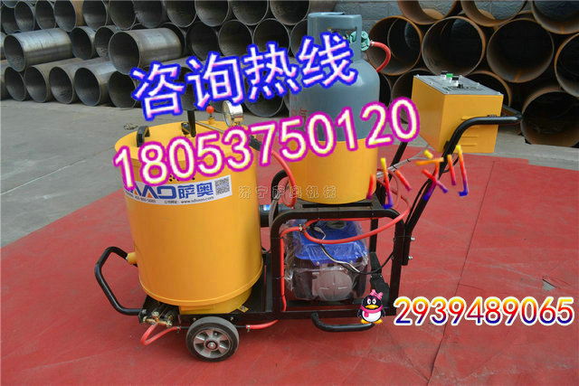 一种以液化石油气为燃料,对灌缝料箱底部进行加热。料箱壁内填充导热油使加热快且受热均匀,在导热油层外部填充保温岩棉起到保温作用。在灌缝料熔化后,可利用手工搅拌方式加速热交换,在灌缝料达到施工要求后,启动沥青泵将灌缝料输出,手工向前(或向后)将出料口对准裂缝,推动设备进行灌缝作业的设备
