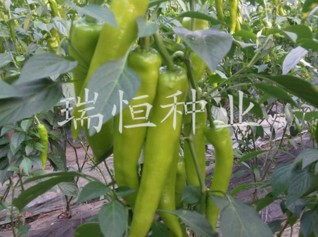 植株开展度中等,生长旺盛。连续座果性强,产量高,耐寒性好,适合秋冬、早春日光温室种植。果实羊角形,淡绿色。在正常温度下,长度可达23-28厘米左右,直径4厘米左右,外表光亮,商品性好。单果重80-120克,辣味浓。抗烟草花叶病毒病