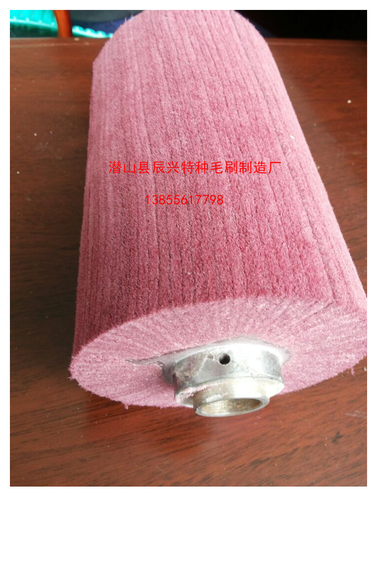 研磨刷,包括基座,在基座一侧设有若干个安装凹槽,在凹槽内分别固定有研磨丝,基座另一侧设有固定凸台,这种研磨刷研磨石材表面时,各研磨丝端部分别与石材表面接触,这样使研磨刷与石材的研磨面分散化了,而研磨刷通过其一侧所设的固定凸台固定在研磨机的摆杆上,研磨刷随着摆杆的不同摆动方向在石材表面形成所要求的研磨痕迹。当改变安装研磨丝的凹槽形式以及所装研磨丝的粗细长短时,可使石材表面实现具有凸凹感或者仿古、哑光等不同的研磨效果。