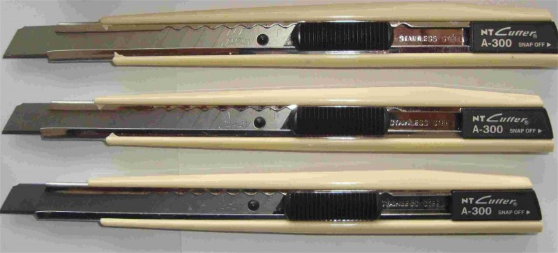 日本NT ntcutter刀具《*A-300小美工刀,20把每中箱,240把每箱(配用BD-100小刀片/BA-100小刀片);*A-300GRP小美工刀,20把每中箱,240把每箱(配用BD-100小刀片/BA-100小刀片);*A-250RP美工刀(配用BD-100小刀片/BA-100小刀片;*D-400雕刻刀(配用BDC-200P/BDA-200P雕刻刀片);*D-400GP雕刻刀(配用BDC-200P/BDA-200P雕刻刀片);*D-1000雕刻刀(配用BDC-200P/BDA-200P雕刻刀片);*L-300RP大美工刀(配用BL-150P大刀片);*L-500大美工刀(配用BL-150P大刀片);*L-500G大美工刀(配用BL-150P大刀片);L-500GRP大美工刀(配用BL-150P大刀片);M-500开箱钩刀雕刻刀(配用MB-1P雕刻刀片/BM-2P钩刀片);日本NT ntcutter刀片《*BA-100小刀片(60度角);*BD-100小刀片(30度角)*BDC-200P雕刻刀片(30度角);*BDA-200P雕刻刀片(60度角;*BM-1P雕刻刀片(30度角);*BM-2P钩刀片;*BL-150P大刀片(60度角)