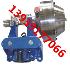 3、装时首先通入压力空气,是活塞杆5缩回气缸内,然后将摩擦块12在垂直制动盘的方向装如制动盘内,再将基座9水平固定在刚性机座上,使其中心与制动盘厚度中心成一直线,安装位置尺寸见结构示意图.