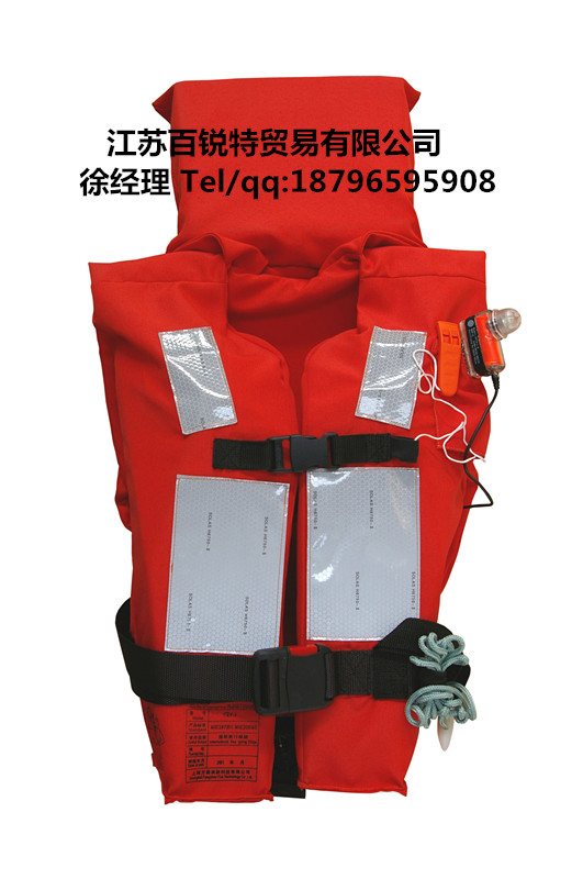 新标准救生衣是按照IMO MSC.200(80)、MSC.207(81)的要求,以及国家GB4303-2008标准设计制造的,浮力大于155N,满足体重140kg、胸围1750mm的人员穿着。配有救生口哨。该救生衣配有可抛投的漂浮系带,可系在水中另1人穿着的救生服或者救生衣上,还配有可救援的提拉环,让救援人员将穿者托出水面送入救生艇或救生筏内。该规范于2010年7月1日实施 ,该救生衣适合人穿着。该产品经CCS、GL认可,取得CCS,EC认可证书。