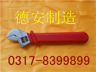 绝缘活扳手适用范围大,可以调整开口尺寸,规格为8寸,10寸及12寸,其绝缘性能可靠,经第三方质量检测达标产品,手柄为红色,有防脱环,绝缘材料选用国外进口复合材料制作,使用时手感好,是电工作业*工具。