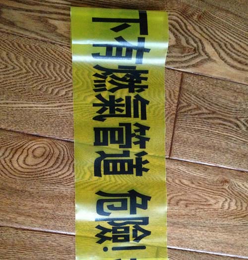 燃气管道警示带还可起到安全警示的作用.它还可根据客户要求定制厚度,长度及宽度等,诸多用于地埋,给施工带来方便地埋警示带一般铺设在地下于地下管道,光缆等配合使用,可以让施工人员正确的探测到管道,电缆所处的位置,以免造成管道破损等后果。关于国计民生的第五类运输体系及信息传输系统的警示防护,管网施工现场、道路施工现场、交通事故现场保护,田野中的直埋管线有着明显的防护警示作用。