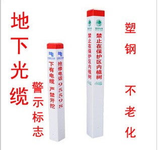 电力电缆警示桩,高压危险玻璃钢标志桩,具有强度高,重量轻,耐腐蚀,抗冲击,不龟裂,不变色,使用寿命长等特点。产品无二次回收价值,因此具有防盗功能。安装简便,是水泥警示桩的有效换代产品。用途:主要用于电缆线路在绿化带、农田、灌木丛、郊区等设置电缆路径标志块不明显的地方。可单独用于一根电缆的走向标示,也可用于几根电缆并行的电缆通道走向标志。直线段宜每间隔100米设置1座,一般设置在各类电缆井处。直线段较长时,在两座工作井之间加设标志桩。 ,为进一步规范天然气管线标志桩建设,燃气公司从8月中旬开始,加快速度对原有天然气管线标志桩进行整改及对新建天然气管线标志桩进行埋设,一个多月时间,完成了90%的工程量,共埋设了柱状标志桩1087只,人行道上的块状标志桩正在敷设中。 电力塑钢标志桩 电信路径警示桩 PVC路径标志桩,地埋式塑钢电力标志桩PVC电信电缆警示桩, 电缆路径标志桩采用高分子复合材料配以高强度玻璃纤维经高温压制而成。具有强度高,重量轻,耐腐蚀,抗冲击,不龟裂,不变色,使用寿命长等特点。产品无二次回收价值,因此具有防盗功能。安装简便,是水泥警示桩的有效换代产品。用途:主要用于电缆线路在绿化带、农田、灌木丛、郊区等设置电缆路径标志块不明显的地方。可单独用于一根电缆的走向标示,也可用于几根电缆并行的电缆通道走向标志。直线段宜每间隔100米设置1座,一般设置在各类电缆井处。直线段较长时,在两座工作井之间加设标志桩。 PVC标志桩,地埋标志桩,塑钢路径标志桩,山东防伪铅封,塑钢地埋式标志桩PVC电力电信光缆警示桩, 型号 101 * 利安,规格 14*14 15*15 17*17 电缆通道标识牌材质及制作工艺: 电缆通道标识桩(牌)材质:塑钢PVC,标志符号用红漆图刷 电缆通道标识牌(标志桩/板)内容: 电缆通道内应加装电缆标志石或标志板,应有电缆转角标志、中间接头标志,电力警示标志等,标识石与标识板内容不同,但都要求有“电力电缆 严禁挖掘”、“高压 危险”字样和电缆走向和类型标志,可参考电缆施工图纸要求 标识牌现场布置 埋深要求:人行道时电缆标志板应与地面保持水平。草坪地时高出地面5CM。 电缆通道直线段电缆标志桩、板每隔15米埋设1块标志桩。 埋设电缆每个转角处应根据相应符号埋设1块电缆标志桩。 电缆中间每处接头都应埋设 1块电缆中间头标志桩。 电缆交叉、转弯处每隔5-10米装设标识牌,电缆进出工井、隧道及建筑物时,应在出口两侧装设标识牌。 电缆通道标识牌材质及制作工艺:电缆通道标识板(牌)材质:塑钢PVC,标志符号用红漆图刷。 电缆通道标识牌(标志桩/板)内容:电缆通道内应加装电缆标志石或标志板,应有电缆转角标志、中间接头标志,电力警示标志等,标识石与标识板内容不同,但都要求有“电力电缆 严禁挖掘”、“高压 危险”字样和电缆走向和类型标志,可参考电缆施工图纸要求 标识牌现场布置 埋深要求:人行道时电缆标志板应与地面保持水平。草坪地时高出地面5CM。 电缆通道直线段电缆标志桩、板每隔15米埋设1块标志桩。 埋设电缆每个转角处应根据相应符号埋设1块电缆标志