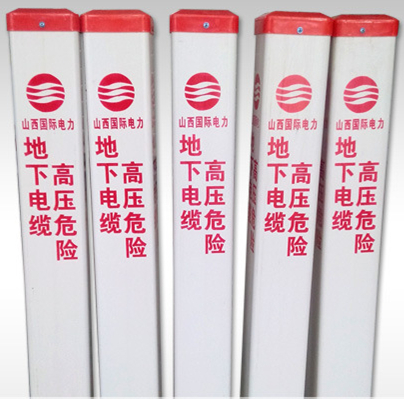 电力电缆警示桩,高压危险玻璃钢标志桩,具有强度高,重量轻,耐腐蚀,抗冲击,不龟裂,不变色,使用寿命长等特点。产品无二次回收价值,因此具有防盗功能。安装简便,是水泥警示桩的有效换代产品。用途:主要用于电缆线路在绿化带、农田、灌木丛、郊区等设置电缆路径标志块不明显的地方。可单独用于一根电缆的走向标示,也可用于几根电缆并行的电缆通道走向标志。直线段宜每间隔100米设置1座,一般设置在各类电缆井处。直线段较长时,在两座工作井之间加设标志桩。 ,为进一步规范天然气管线标志桩建设,燃气公司从8月中旬开始,加快速度对原有天然气管线标志桩进行整改及对新建天然气管线标志桩进行埋设,一个多月时间,完成了90%的工程量,共埋设了柱状标志桩1087只,人行道上的块状标志桩正在敷设中。 电力塑钢标志桩 电信路径警示桩 PVC路径标志桩,地埋式塑钢电力标志桩PVC电信电缆警示桩, 电缆路径标志桩采用高分子复合材料配以高强度玻璃纤维经高温压制而成。具有强度高,重量轻,耐腐蚀,抗冲击,不龟裂,不变色,使用寿命长等特点。产品无二次回收价值,因此具有防盗功能。安装简便,是水泥警示桩的有效换代产品。用途:主要用于电缆线路在绿化带、农田、灌木丛、郊区等设置电缆路径标志块不明显的地方。可单独用于一根电缆的走向标示,也可用于几根电缆并行的电缆通道走向标志。直线段宜每间隔100米设置1座,一般设置在各类电缆井处。直线段较长时,在两座工作井之间加设标志桩。 PVC标志桩,地埋标志桩,塑钢路径标志桩,山东防伪铅封,塑钢地埋式标志桩PVC电力电信光缆警示桩, 型号 101 * 利安,规格 14*14 15*15 17*17 电缆通道标识牌材质及制作工艺: 电缆通道标识桩(牌)材质:塑钢PVC,标志符号用红漆图刷 电缆通道标识牌(标志桩/板)内容: 电缆通道内应加装电缆标志石或标志板,应有电缆转角标志、中间接头标志,电力警示标志等,标识石与标识板内容不同,但都要求有“电力电缆 严禁挖掘”、“高压 危险”字样和电缆走向和类型标志,可参考电缆施工图纸要求 标识牌现场布置 埋深要求:人行道时电缆标志板应与地面保持水平。草坪地时高出地面5CM。 电缆通道直线段电缆标志桩、板每隔15米埋设1块标志桩。 埋设电缆每个转角处应根据相应符号埋设1块电缆标志桩。 电缆中间每处接头都应埋设 1块电缆中间头标志桩。 电缆交叉、转弯处每隔5-10米装设标识牌,电缆进出工井、隧道及建筑物时,应在出口两侧装设标识牌。 电缆通道标识牌材质及制作工艺:电缆通道标识板(牌)材质:塑钢PVC,标志符号用红漆图刷。 电缆通道标识牌(标志桩/板)内容:电缆通道内应加装电缆标志石或标志板,应有电缆转角标志、中间接头标志,电力警示标志等,标识石与标识板内容不同,但都要求有“电力电缆 严禁挖掘”、“高压 危险”字样和电缆走向和类型标志,可参考电缆施工图纸要求 标识牌现场布置 埋深要求:人行道时电缆标志板应与地面保持水平。草坪地时高出地面5CM。 电缆通道直线段电缆标志桩、板每隔15米埋设1块标志桩。 埋设电缆每个转角处应根据相应符号埋设1块电缆标志