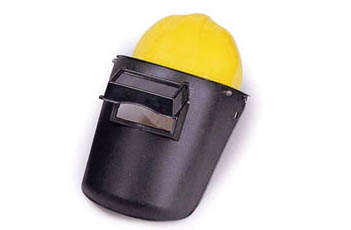 本实用新型涉及到一种电焊防护罩。其特点是电焊镜片不是被固定在电焊框架上,而是可以在框架中上下移动,根据需要可以很方便地使镜片离开罩面和框架上的窗口。整个焊接过程中,操作者不需要将电焊防护罩拿下,即可看清焊接部位和检查焊接情况,使动作连贯,准确性高,并且减轻劳动强度,节约时间,提高工作效率。特别是在窄小的工作场合,这种电焊防护罩更具有优越性。