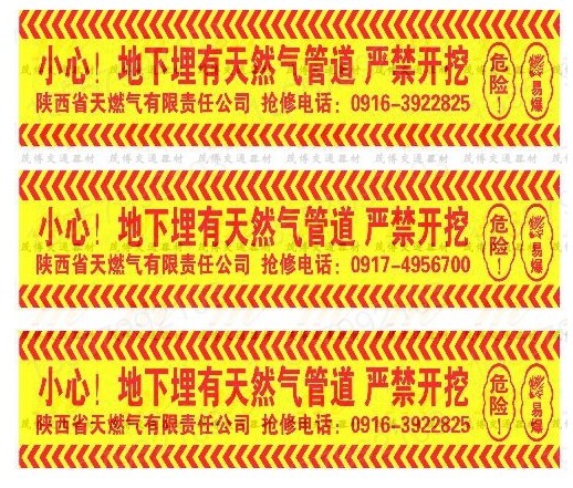 警示带又称标记带广泛地应用于各种直埋式燃气管道、输油管道、城市给排水等气、液管道输送系统、电力电