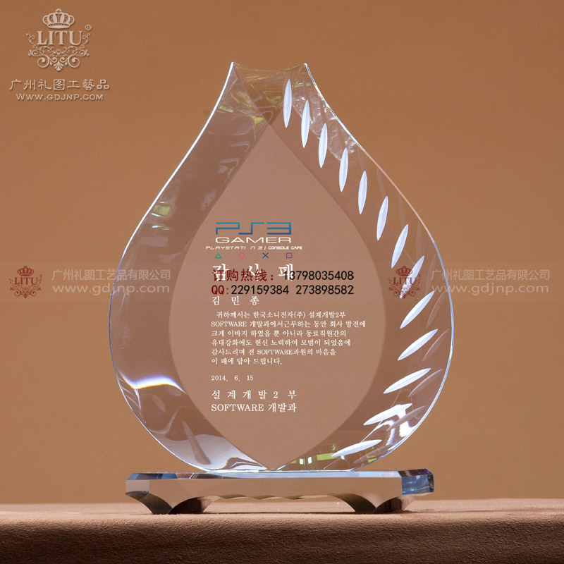 1、此款水晶奖杯为定制物品,买家在下拍前请先与工作人员联系或告诉我们;您要定做的一些相关要求及尺寸规格,内容等相关信息!以便我们为您核算定做的价格及时间。