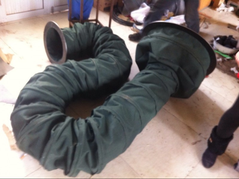 技 术 要 求 一、用途:用于隧道、井下局部扇风机进行通风。 二、风筒结构及规格尺寸 1、风筒品种:风筒按涂覆布材料分为橡胶涂覆布负压风筒、塑料涂覆布负压风筒和橡塑涂覆布负压风筒。 2、风筒结构图: 3、风筒节与节之间连接采用快速接头软带,结构如图: 4、风筒规格 项目 尺寸 允许误差(mm 注:(1)、风筒直径指的是端圈直径; (2)、特殊形状规格的异型风筒、弯头、三通等可根据需方要求制造; (3)、风筒吊环、端圈等金属配件的规格如有特殊要求由双方商定; (4)、每节风筒的一端加接头反边布,其长度为150mm—200mm。 、包装 运输 贮存 1、将风筒沿轴向压缩至小于700mm长,并用绳子或布条固定3~4处,再用*性较好的材料包装。 2、风筒在运输过程中,防止机械撞击和摩擦,避免日晒、雨淋。 3、产品应贮存在通风良好的库房内,码置不得过高,以免影响使用质量,使用过的导风筒,应先冲洗凉干,然后再折叠存放,禁止与有损于橡胶和塑料品质的物质接触,避免阳光直射、雨淋,仓贮温度应在-15℃~35℃之间,相对温度45-75﹪之间,并距热源1m以外。 4、产品在规定的运输、贮存条件下,自生产日期起,贮存期1年内其阻燃性、抗静电性符合本标准的规定。 5、导风筒应根据巷道及风机风量大小等要求选择适当规格,以及弯头、三通等异形规格,连接时注意气流方向。 6、在巷道内应悬挂起来,做到平直、拉紧吊牢、逢环必挂、见坏必补、拐弯缓慢、排除积水,以利降低阻力。(修补方法:将破损处洗净凉干,用胶水处理)