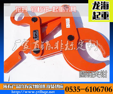 【材质】 1T~5T圆钢夹钳采用低碳*合金钢制造,使用寿命长;