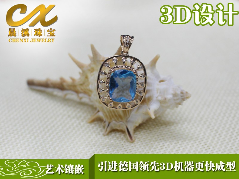 产品别名:天然蓝水晶18K红金镶嵌吊坠