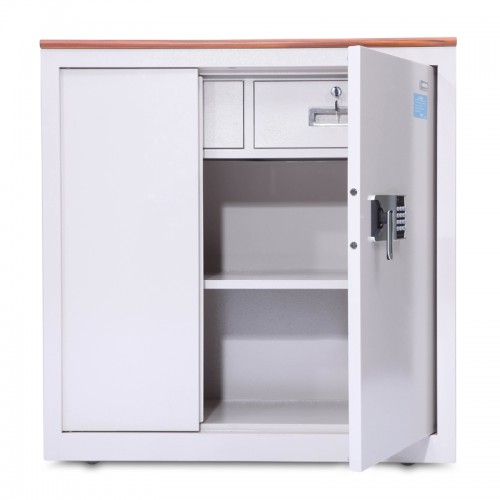 特点:1、钢材:选用*加厚冷轧钢板。柜体裸板厚度1.0mm,柜门裸板厚度1.2mm,成品实测厚度会偏大0.16-0.2mm。2、表面处理:采用国际检测的室内环保型环氧聚酯粉末涂料,采用单色、高压静电喷涂技术(喷涂厚度不低于0.78μ),环保无毒害无气味,充满现代气息,光洁平滑,典雅*,稳定防锈,保用10年。3、特点:整体四层,左右3:7对开双门,中间两个带锁抽屉;两块可调节层板(可加配),层板可调整*小高度50mm。4、锁具:采用经过国家保密局安全保密技术测评中心检测的M103密码锁。5、内置抽屉不锈钢拉手采用304L材质,抽屉导轨采用*三节无声滑珠导轨。6、采用隐藏式定向尼龙脚轮,单点负重大于60KG,不伤地板。其它五金连接件或紧固件需电镀或其它防锈处理。7、保密柜的柜身、门板、层板、抽屉等表面均应进行酸洗、除污、除锈、磷化、表调、清洗、烘干处理后进行静电喷涂。8、柜门采用内嵌式防撬结构,柜门与门框之间无直接进入柜体的通道。门轴采用走珠式工艺,具有可调整功能,使门与门框之间可保持门缝间隙不大于1.5mm。9、柜体各表面的连接采用互扣式摺边结构和平面焊接工艺。柜体表面平整光滑,无凹陷、敲击痕迹存在。