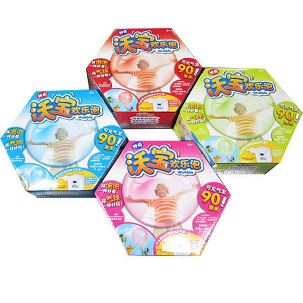 沃宝欢乐泡英文名叫Wubble Bubble Ball,材质是由进口TPR材料制成。充气后像一个大气球,看起来像一个泡泡,是一个可以抛、接、踢、拍,甚至还可以坐各种玩法,适合任何季节在室内户外,与家人、朋友一起互动的玩具。 沃宝欢乐泡是一款儿童玩具,由美国设计师弗兰克(Frank)所设计和研发。他的灵感平源于他的4个富有创造力的孩子。有一天,在他家门前吹着巨大的泡泡,他其中的一个孩子说:“我讨厌我的泡泡爆破,我希望我能和他们一起玩。”这些年,弗兰克无数次从孩子们的口中听到。但这次,他看到了孩子天真的脸上流露失望的表情,弗兰克暗下决心开始寻求将这个愿望变为真实。 是否填充:不填充欢乐加Funmaker销售沃宝欢乐泡*:Funmaker