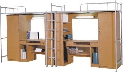C型钢床的连接方式,主题链接不用任何螺栓和焊接,结构稳定,组装方便,可以自由拆装,节约空间,粉末采用锤纹漆,其色泽调和、光亮坚韧、美观大方、且容易擦洗;不积灰尘、涂层均匀、附着力强、漆面不易生锈,可按客户要求喷制各种颜色;表面经过磷化、防腐、防锈、静电喷塑、等化学处理;产品达到国家环保检测标准,光滑*。床架结构稳固、不易变形、承压力好、单层承压力达到200KG,上下梯根据人体生理设计,上下舒适自如。常规学生床架钢管全部采用冷轧宝钢钢管,金属外观符合GB/T3328_2000T3328_1995公寓床标准,公寓床产品材料使用*小件,让每个学生使用安全稳固的产品。钢塑课桌椅具耐水、阻燃、耐老化、桌面平整面部露钉,使用移动噪音小,经济环保等优点。