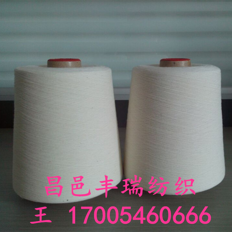 昌邑丰瑞纺织常年生产环锭纺涤棉纱,原料是用仪征大化纤,高配棉,标准配比,电清无接头,条干均匀、毛羽少、挑三丝,可做漂白,染色,适合针织、机织,用于做针织服装面料、针织汗布、高档服装面料、针织起绒、针织毛圈、地毯合股之后用于做织带等。常规支数有:10支12支16支21支24支26支28支32支40支45支60支,也可根据客户要求定做低支纱3支4支5支6支8支。常规配比是65/35 50/50 80/20 cvc60/40 cvc80/20等各种配比,可按客户要求订做反捻纱、竹节纱、强捻纱、合股纱等,联系电话:17005460666 QQ:2781390675