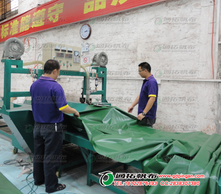 制作帆布制品采用特殊热合工艺解决了接缝、针眼漏水和提高使用寿命,是21世纪首创的防料。在国内同类产品中具有*水平。