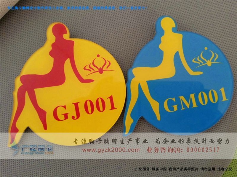 小小的胸牌,大大的内涵文化所在(QQ咨询:800002517),它不但是员工在单位时还是面对顾客群众时的一个身份的标识,更是直面展示企业形象,提升企业文化的一个标示用品,随着时代的不断高速发展,科技的进步,现在的胸牌无论是在工艺上还是在材质造型上都有了更多的改善,使其更人性化、形象化、视觉美观化。使企业在制作胸牌的时候物尽其用,节省办公资源,更彰显企业风采。广州粤忆胸牌制作厂是一间集设计、排版、印刷、后期制作一条龙的大型工牌制作厂家,其高度严格的生产车间制度管理和有着12年经验的*制卡技术,在胸卡制作方面有着*的造工水准,使其生产出来的工卡质*优、美轮美奂,深受国内外各行业领域的一致好评。异形胸牌厂家咨询电话:020-86467473