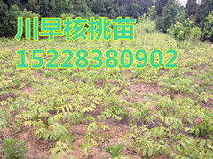 川早核桃苗,核桃新品种‘川早2号’的母本为新疆早实核桃与漾濞晚实核桃杂交后代‘云新7926’,父本为四川乡土优良核桃‘沙河’. 2001年建立杂交园,2003年开始杂交,同年将杂交子代直播,选择1~2年开花结果的薄壳单株,采用大砧芽接和胚芽嫁接技术扩繁.2005年开始,先后在重庆垫江、成都龙泉、绵竹汉旺等地进行区域试验,综合性状表现较好,与‘川早1号’、‘蜀玲’相比,外形更美观,粗蛋白含量(21.93%>和出仁率(61.0%)更高,商品价值极好.于2010年2月通过四川省林木品种审定委员会认定.