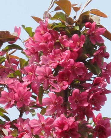 绚丽多姿的珠穆朗玛海棠大*无可挑剔:珠穆朗玛海棠是北美海棠的一种,就让我为大家介绍一下吧:珠穆朗玛 小乔木或灌木,高4~6m;树冠金字塔形,成年株树体开张。叶卵圆形,叶片暗绿色,有时三裂,叶柄深红色。花白色,略带粉红色,直径3~3.5cm。每序5花,萼翻卷,密被毛,花瓣5数,椭圆形,花柱5。果实轻微不规则扁球形,花萼通常宿存。果实直径2.3cm。向阳侧成亮红色,背阴侧橘红色。果实较大如盏盏红灯笼,具有较高观赏价值。