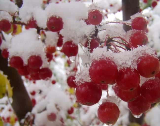 临沂苗木基地2015冬红果树苗火热招商:冬红果又称长寿果、雪红果为蔷薇科、苹果属落叶灌木或小乔木,植株矮小,枝条灰褐色,叶片椭圆形至广椭圆形,绿色,边缘有圆钝的锯齿。伞房花序,花浅粉红色,春季开放。果实椭圆球形,单果重10克至20克,初为绿色,以后逐渐呈黄色,成熟后则为鲜红色,表皮光滑,经冬不落,可持续到第二年的2月至3月才陆续脱落。
