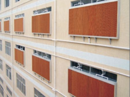 湿帘墙由两部分组成:水帘片和边框。湿帘墙的降温过程是在其核心——湿帘纸内完成的。在波纹状的纤维纸表面有层薄的水膜,当室外的干热空气被风机抽吸穿过湿帘纸时,水膜中的水会吸收空气中的热量后蒸发,带走大量潜热,使经过湿帘纸的空气温度降低,经过这样处理后的凉爽湿润空气进入室内。与室内的热空气混合后,通过风机排出室外。 按照水帘片的厚度,可分为10cm和15cm和20cm三种。 湿帘的密度也可以称作,60.90、70.90、50.90,其中5090*密,价格相比也较贵些, 按照边框材料可分为铝合金、镀锌板、不锈钢三种。比较常用的是厚度15cm的水帘墙,降温效果较好, 在负压通风降温模式中,负压风机用于把室内的污浊、热空气抽走,而安装在负压风机对面的湿帘墙则用于进风。