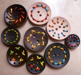 彩线木扣,穿线木纽扣,手工扣,竹子扣