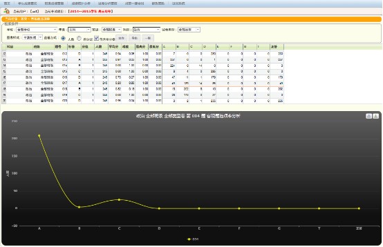 分析考生、班级、年级、学校为单位的各科成绩、总分、各题的得分、小题得分,得分点,平均分各类排名、前X名分布情况、正答率、选中率等各类报表。