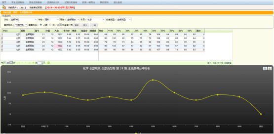 可以按学校、科目、班级、分数、单个学生进行查询,并可同时查看整个年级的分析数据。