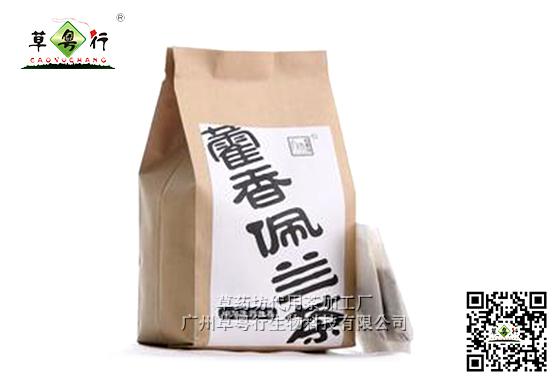 近年来,草药坊代用茶加工厂专门开发藿香佩兰代用茶代加工项目。藿香还可称为排香草、大叶薄荷。为唇形科植物藿香的地上部分。多年生草本,高达1m,有香气。生于路边、田野。四川、江苏、浙江、湖南等均有栽培。藿香芳香温煦,散表邪、化里湿、醒脾开胃、和中止呕;藿香本身的主要功能是去除湿气,但是,当湿气把脾胃之气困住以后,单单祛湿有的时候效果不好,尤其是当湿浊之气严重,郁结在脾胃,导致陈腐淤积,藿香的主要作用是振奋脾胃之气,这样脾胃的气机振奋了,湿浊之气也就容易去掉了。而佩兰, 原名兰草产地为菊科多年生草本佩兰的地上部份。主产於中国江苏、河北、山东等地。佩兰气香味辛性平,醒脾化湿解暑。二者相伍为用,其清热化湿解暑、和胃醒脾之功效更著,用于缓解夏日伤暑、湿浊中阻、胃失和降而致的倦耽胃脘痞闷、恶心、呕吐、口中发黏等症。