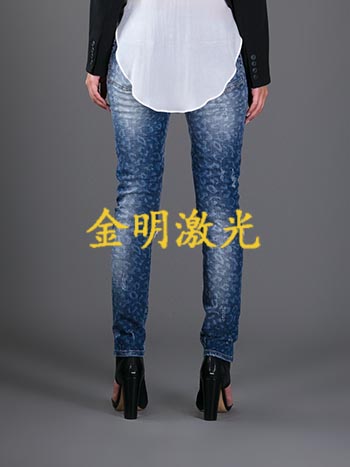 公司技术人员近期为客户来图加工女装深色牛仔裤,图案遍布整条牛仔裤当中,使用激光印花设备不到20秒钟就能展现出成品。这种*节能牛仔加工机器是未来服装加工领域的开拓者。