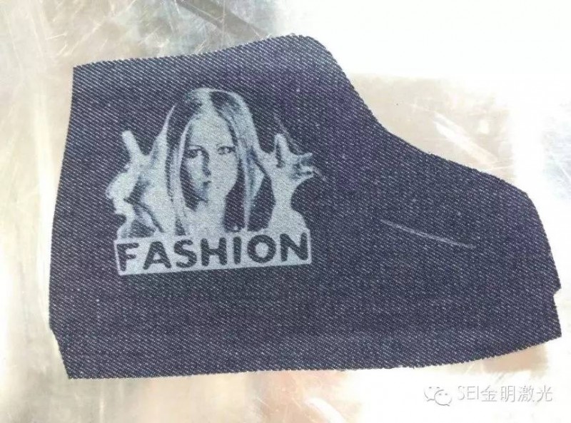 SEI激光牛仔裤加工www.jm2001.com设备并不是单单只能加工在牛仔裤面料上的设备,如果它强大的科技技术不能广泛的应用,那么也不能称之为高科技产物。SEI激光印花打标机经过调节软件参数,还可以作用在鞋材、皮革、针织面料上。