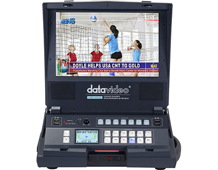 •一台专为EFP多机作业设计的移动式录像系统,内含硬盘录像机、十英寸监看屏幕与电池供电系统。
