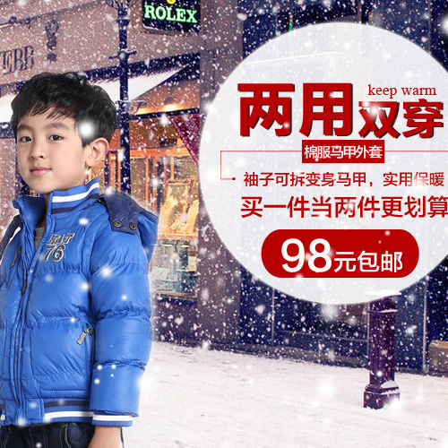 四款颜色可选,巧妙运用色彩组合,更为突出的是其可拆卸袖子设计,多功能棉衣呈现眼前,当孩子们做剧烈运动时,可拆下袖子,让运动更自由更舒适;精美的版型,*的做工,使得整件棉服更加时尚个性!