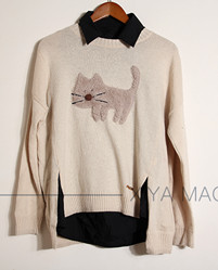 (4)毛织厂选色;每件毛衣款式在选色方面,由加工厂负责准备色卡供其选择。