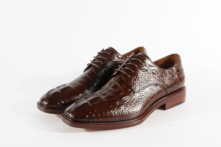 黑色压花进口胎牛皮手工皮鞋 鳄鱼纹个性宴会男鞋