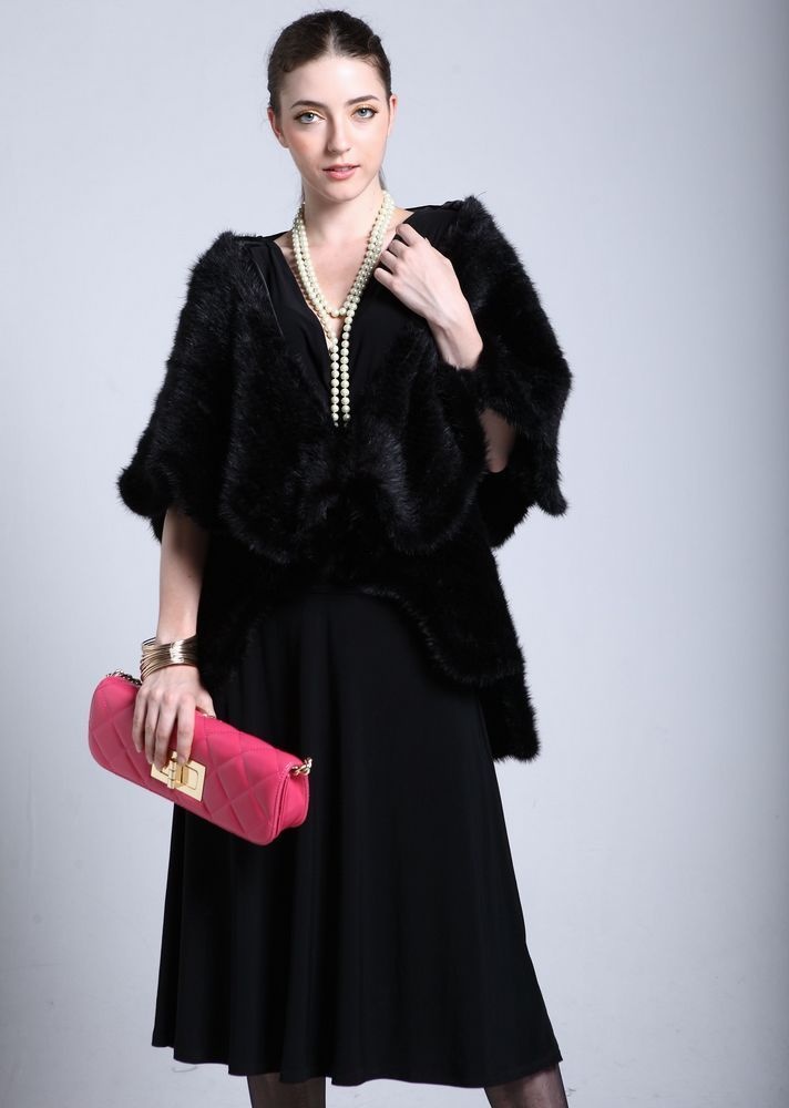 这样的打扮或许是*能凸显披肩的经典搭配,浅灰色针织衫搭配黑色皮草披肩,不张扬却充满时尚的韵味,不穿的时候可以放下,穿的时候就披上,极为方便。