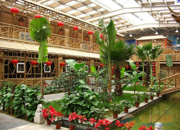 生态餐厅中综合设计、景观制作与植物养护的好坏直接关系到就餐环境的品位和对顾 客的吸引力,是体现生态餐厅的特色之一。所以必须结合园林设计、景观植物养护、以 及农艺技术等*的知识,根据不同功能区的环境和景观布局的需要配置植物。高大的植物 如香蕉、椰树类可以布在地势较低的水系边,喜光的瓜果蔬菜可以布在光线较好的温室四周 ,蔓生的绿植可以设支架或爬延于生态雅间之上,矮小的耐荫花草植物可以配植于架子下和 高大植物下。我公司会创造一个*、立体的景观绿化美化效果.我公司不仅追求设计出 生态餐厅视觉效果达到,并且在建设节约型社会的趋势下,实用、经济、美观也作为设 计的三大要求。潍坊生态餐厅温室,山东生态餐厅,生态餐厅行情,生态餐厅设计,