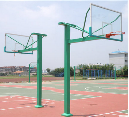 材质:3.0㎜厚铁板焊接制作,配安全钢化玻璃篮球板铝合金包边(透明板),厚10㎜,主管150mm钢材,标准篮球圈,*蓝球网,埋地或打暴涨螺丝固定